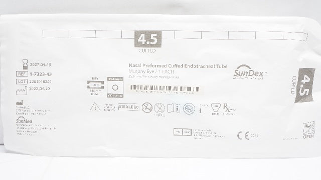 - SunMed 1-7323-45 Nasal Preformed Cuffed Endotracheal Tube 4.5mmID x 6.2mmOD