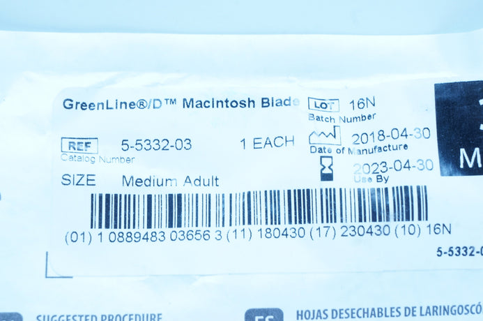- SunMed 5-5332-03 GreenLine/D Laringoscope Blade Miller, Macintosh, Size 3