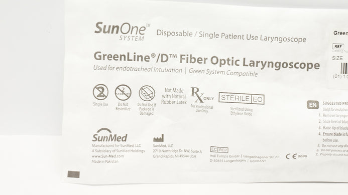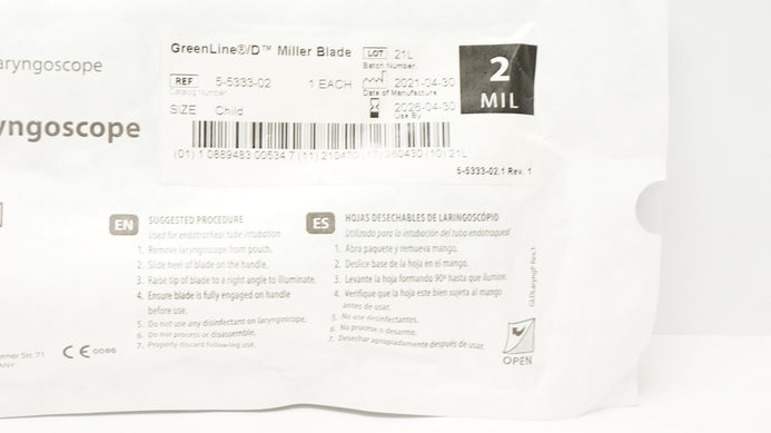 - SunMed 5-5333-02 GreenLine/D Fiber Optic Laryngoscope Miller Blade, Size 2MIL