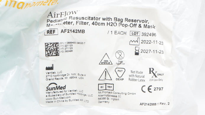 - SunMed AF2142MB Pediatric AirFlow Manual Resuscitator <=40kg, 1000mL Bag