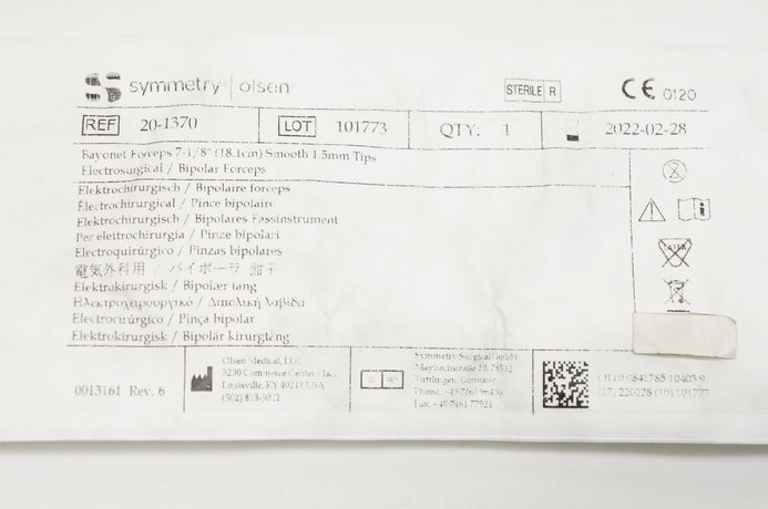 - Symmetry Olsen 20-1370 Bayonet Forceps 7-1/8inch, 1.5mm Tips Bipolar Forceps