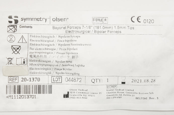 - Symmetry Olsen 20-1370 Byaonet Forceps 7-1/8inch, 1.5mm Tips Bipolar Forceps