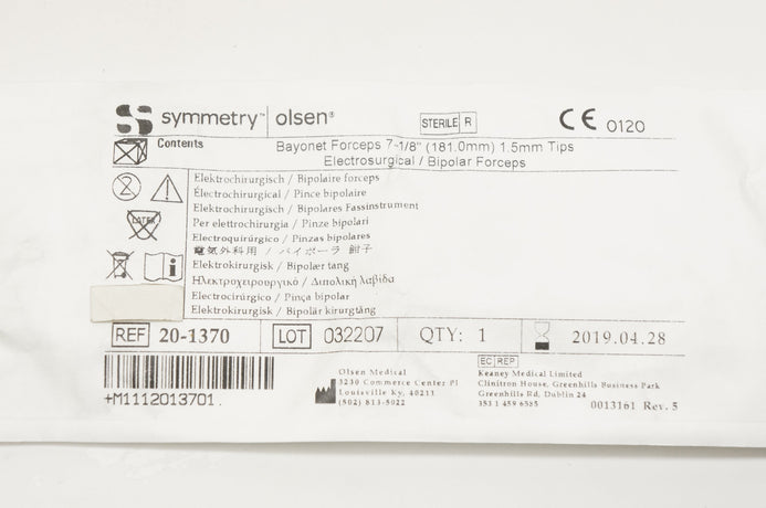 - Symmetry Olsen 20-1370 Byaonet Forceps 7-1/8inch, 1.5mm Tips Bipolar Forceps (x)