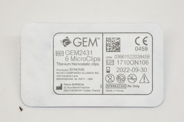 - SYNOVIS GEM2431 6 MicroClips Titanium Hemostatic Clips (x)