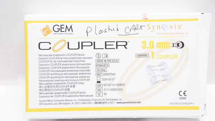 - Synovis GEM2754/I GEM Microvascular Anastomotic Coupler Device 3.0mm (x)