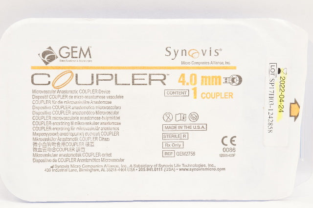 - Synovis GEM2756 GEM Microvascular Anastomotic Coupler Device 4.0mm