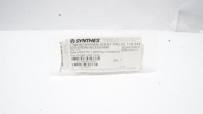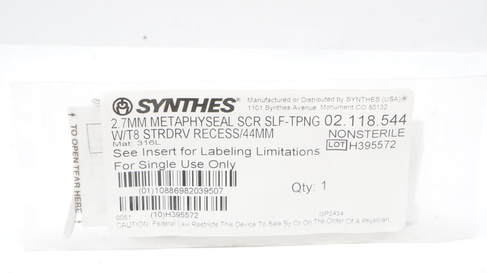 - Synthes 02.118.544 2.7mm Metaphyseal Screw w/T8 Stardrive Recess 44mm