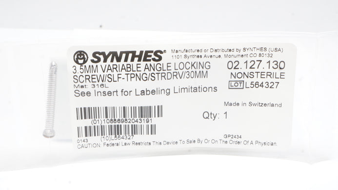 - Synthes 02.127.130 3.5mm VA Locking Screw Self-Tapping Stardrive 30mm
