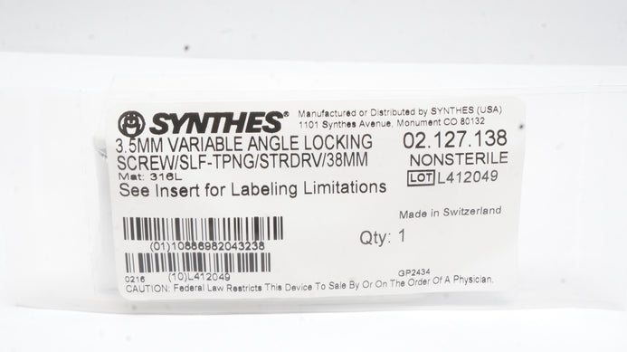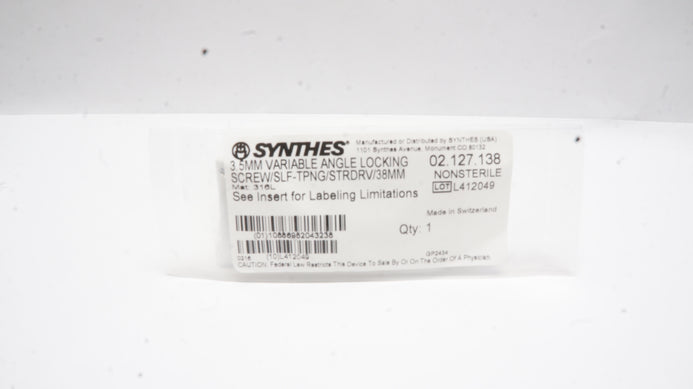 - Synthes 02.127.138 3.5mm VA Locking Screw Self-Tapping/Stardrive/38mm