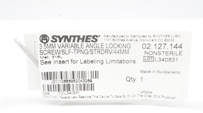 - Synthes 02.127.144 3.5mm VA Locking Screw Self-Tapping Stardrive 44mm