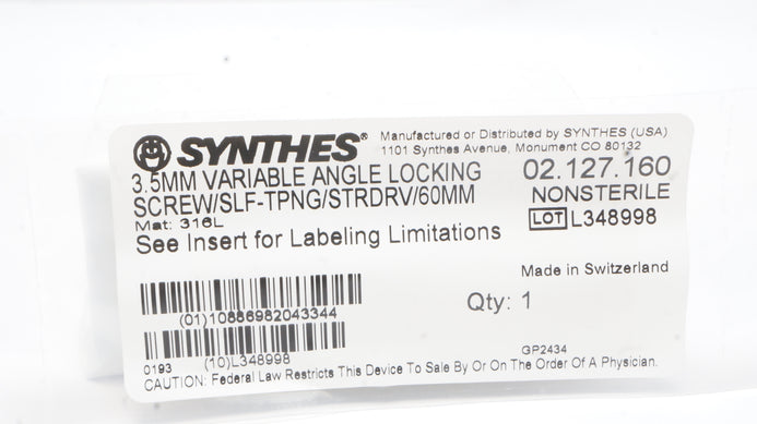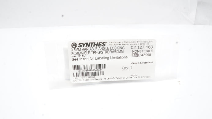 - Synthes 02.127.160 3.5mm VA Locking Screw Self-Tapping Stardrive 60mm