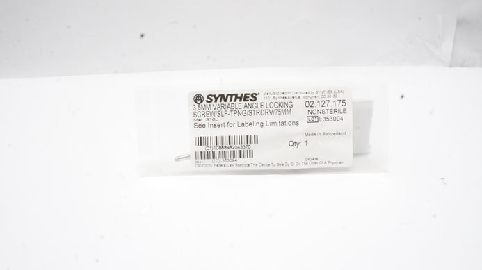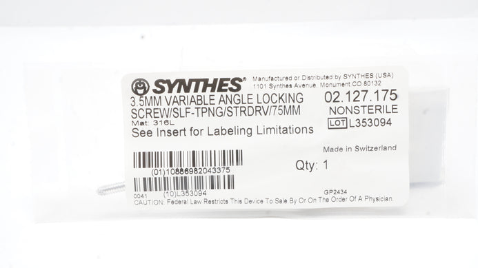- Synthes 02.127.175 3.5mm VA Locking Screw Self-Tapping Stardrive 75mm