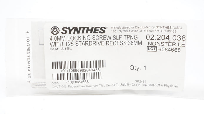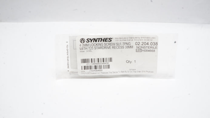 - Synthes 02.204.038 4.0mm Locking Screw Self-Tapping W/T25 Stardrive Recess 38mm