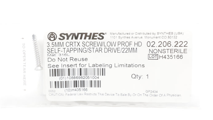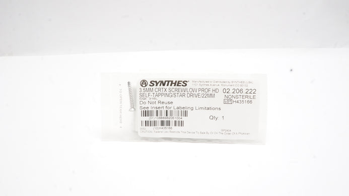 - Synthes 02.206.222 3.5mm Cortex Screw/Low Prof HD Self-Tapping Star Drive /22mm