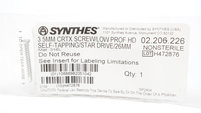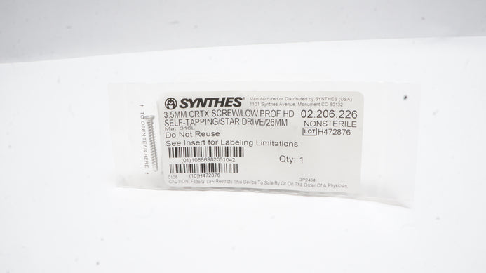 - Synthes 02.206.226 3.5mm Cortex Screw/Low Prof HD Self-Tapping/Star Drive /26mm