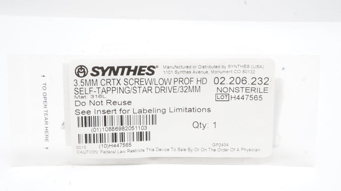 - Synthes 02.206.232 3.5mm Cortex Screw/Low Prof HD Self-Tapping/Star Drive /32mm