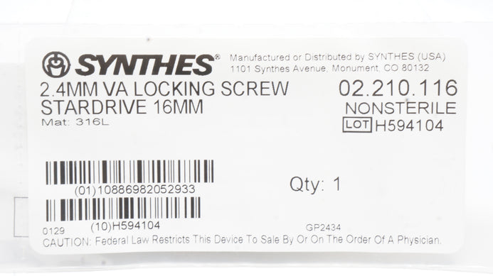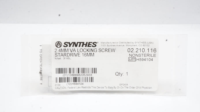 - Synthes 02.210.116 2.4mm VA Locking Screw Stardrive 16mm