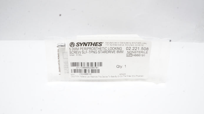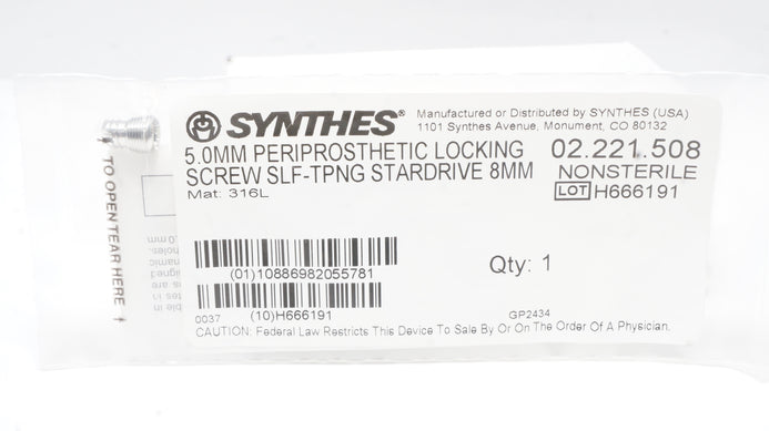 - Synthes 02.221.508 5.0mm Periprosthetic Locking Screw Self-Tapping Stardrive 8mm