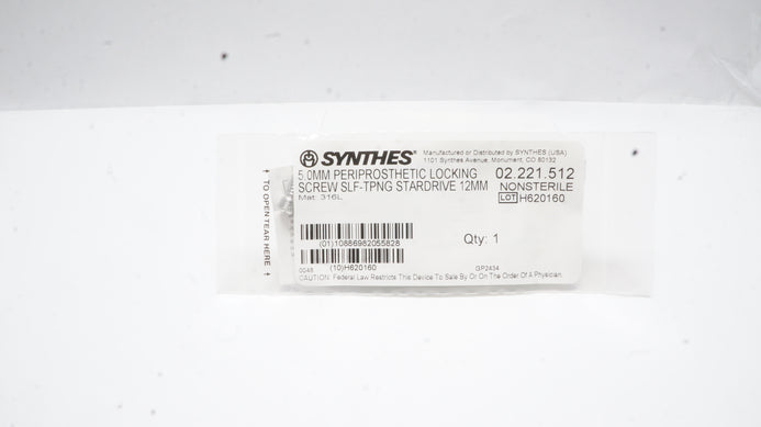 - Synthes 02.221.512 5.0mm Periprosthetic Locking Screw SLF/TPNG Stardrive 12mm
