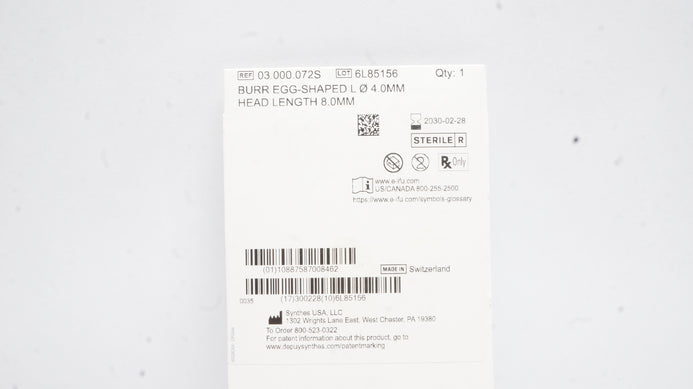 - Synthes 03.000.072S Burr EGG-Shaped 0.4mm Head Length 8.0mm