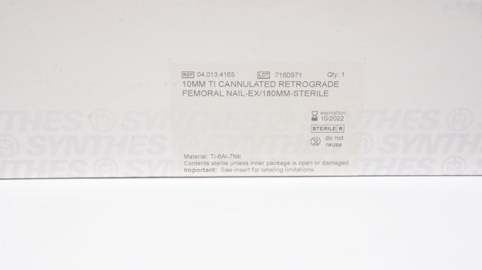 - Synthes 04.013.416S 10mm Ti Cannulated Retrograde Femoral Nail-Ex/180mm (x)