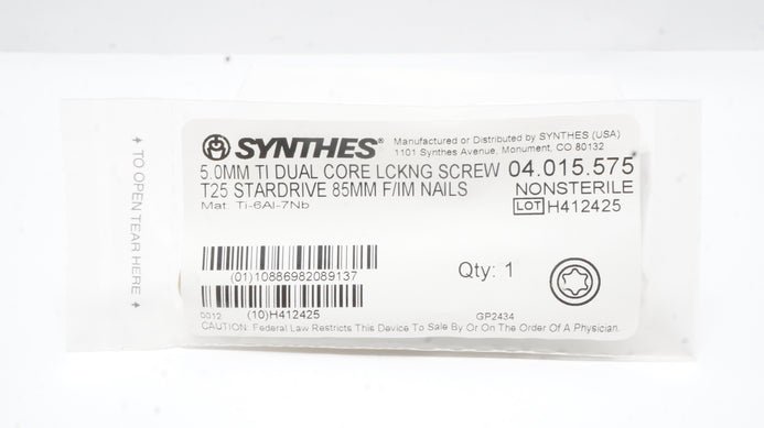 - Synthes 04.015.575 5.0mm TI Dual Core LCKNG Screw T25 Stardrive 85mm F/IM Nails