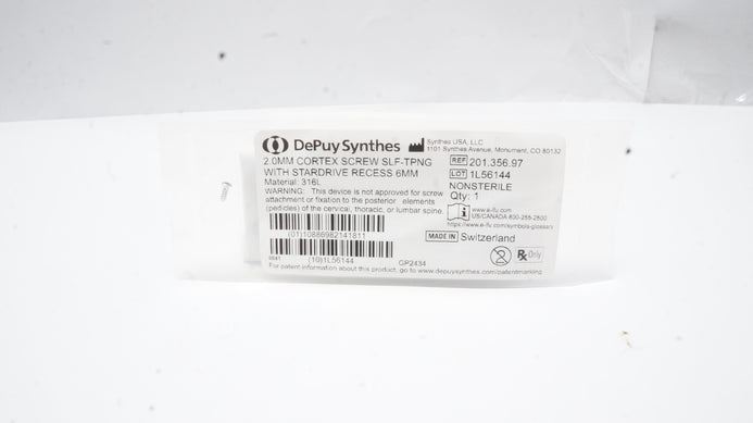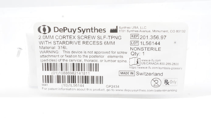 - Synthes 201.356.97 2.0mm Cortex Screw Self-Tapping W/Stardrive Recess 6mm