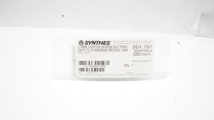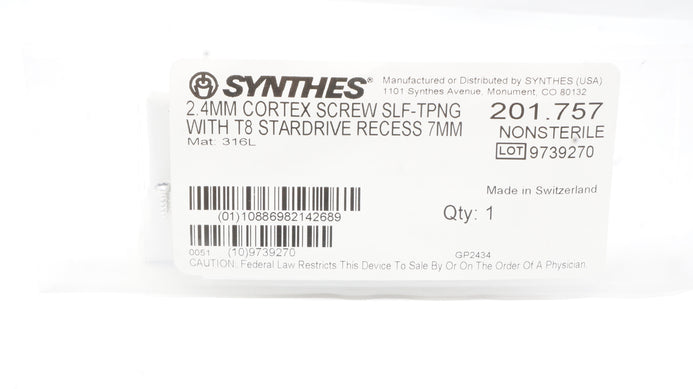- Synthes 201.757 2.4mm Cortex Screw Self-Tapping W/T8 Stardrive Recess 7mm