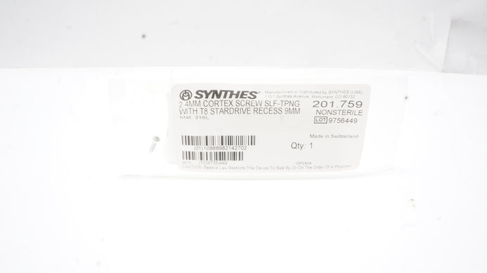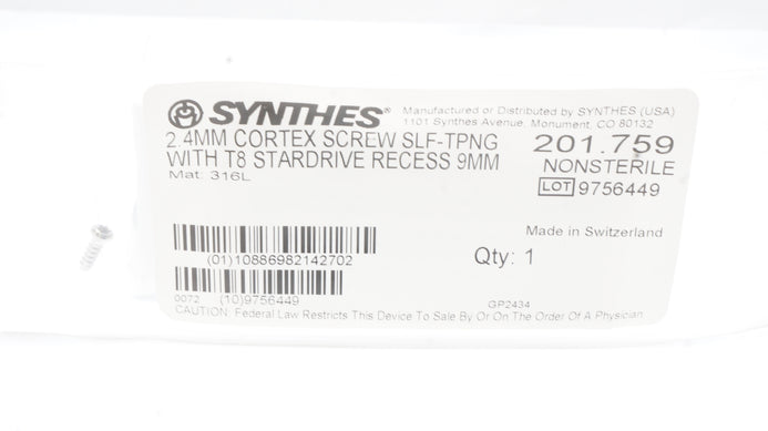 - Synthes 201.759 2.4mm Cortex Screw Self-Tapping W/T8 Stardrive Recess 9mm