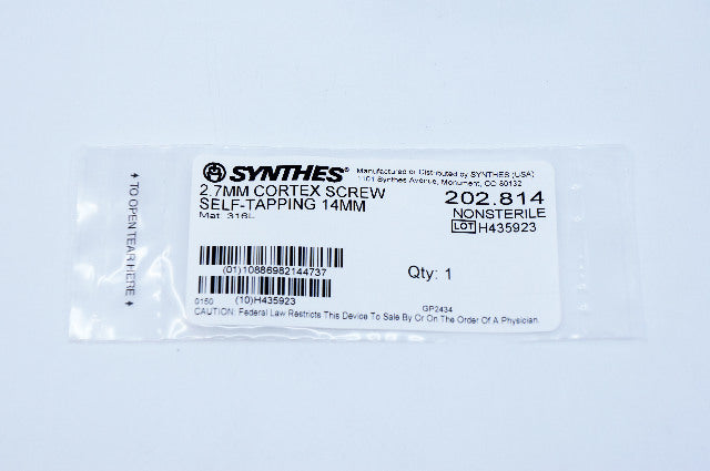 - Synthes 202.814 2.7mm Cortex Screw Self-Tapping 14mm