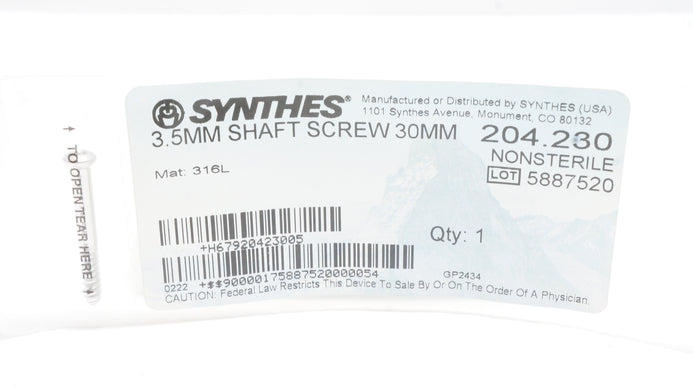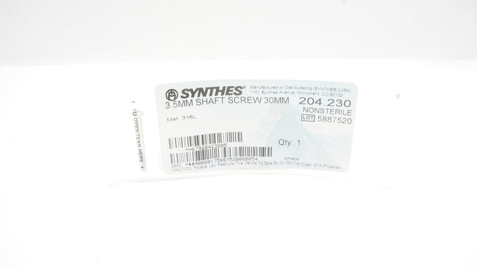 - Synthes 204.230 3.5mm Shaft Screw 30mm