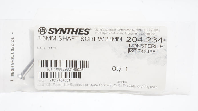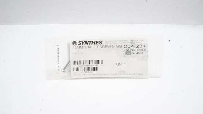 - Synthes 204.234 3.5mm Shaft Screw 34mm