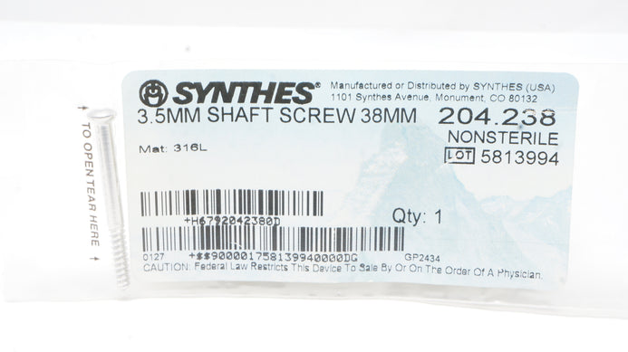 - Synthes 204.238 3.5mm Shaft Screw 38mm