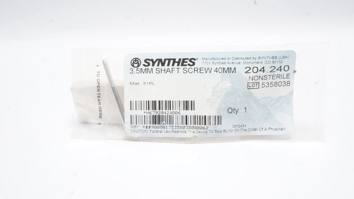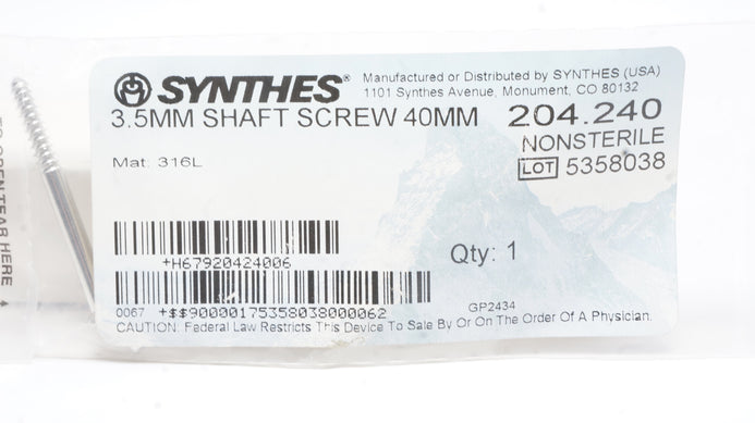 - Synthes 204.240 3.5mm Shaft Screw 40mm