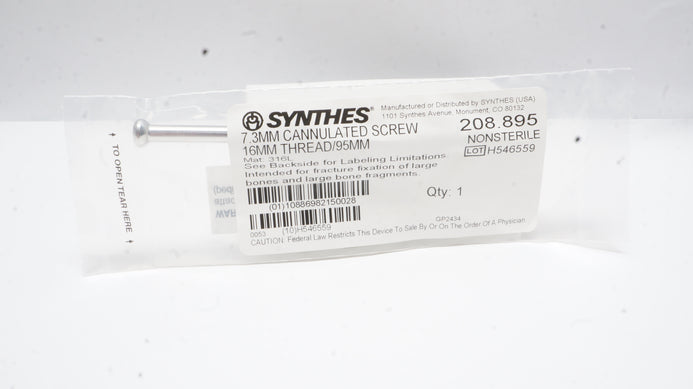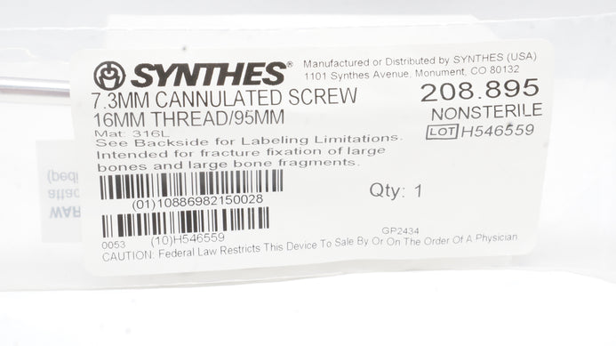 - Synthes 208.895 7.3mm Cannulated Screw 16mm Thread/95mm