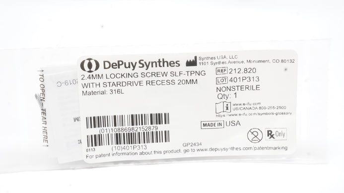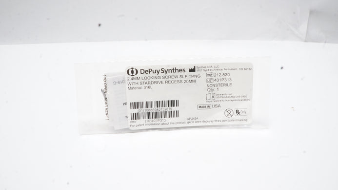 - Synthes 212.820 2.4mm Locking Screw Self-Tapping W/Stardrive Recess 20mm