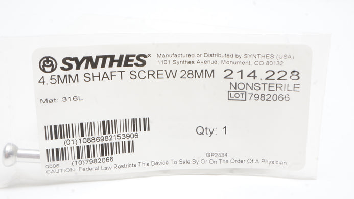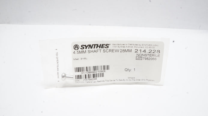 - Synthes 214.228 4.5mm Shaft Screw 28mm