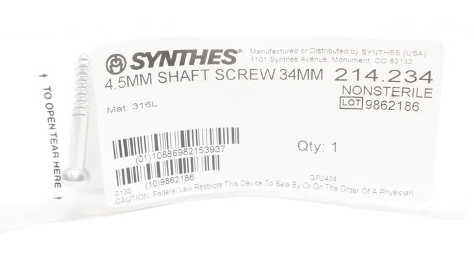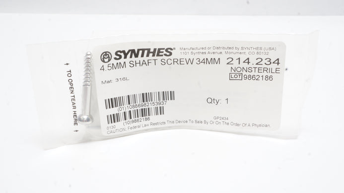 - Synthes 214.234 4.5mm Shaft Screw 34mm