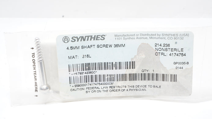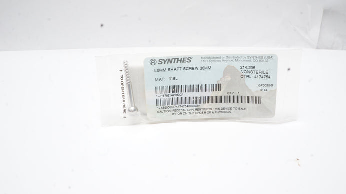 - Synthes 214.236 4.5mm Shaft Screw 36mm