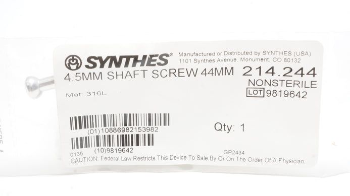 - Synthes 214.244 4.5mm Shaft Screw 44mm