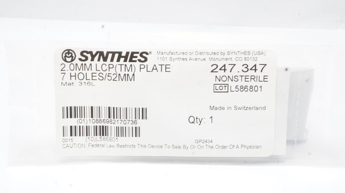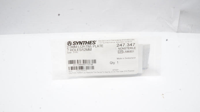 - Synthes 247.347 2.0mm LCP (TM) Plate 7Holes/52mm
