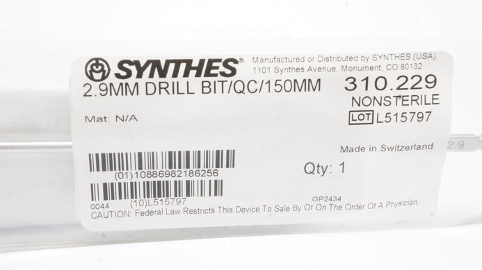 - Synthes 310.229 2.9m Drill BIT/QC/150mm