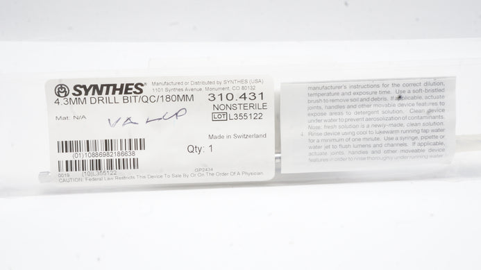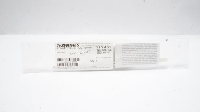 - Synthes 310.431 4.3mm Drill Bit/QC/180mm