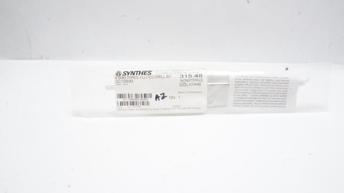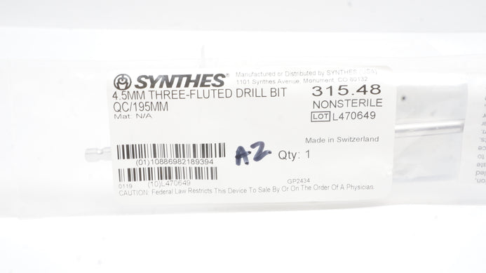 - Synthes 315.48 4.5mm Three-Fluted Drill BIT QC 195mm