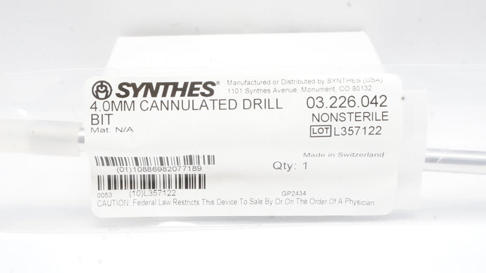 - Synthes 03.226.042 4.0mm Cannulated Drill BIT