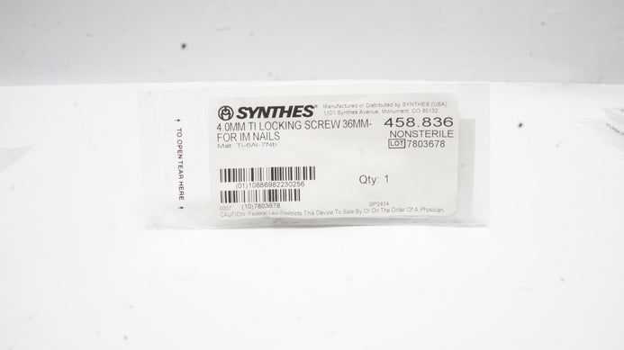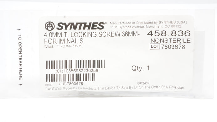 - Synthes 458.836 4.0mm TI Locking Screw 36mm For IM Nails
