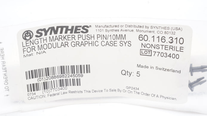- Synthes 60.116.310 Length Marker Push Pin/10mm Nonsterile - Pack of 4