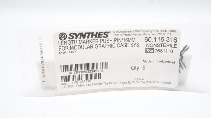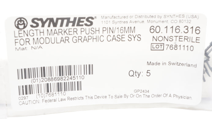 - Synthes 60.116.316 Length Marker Push Pin/16mm - Pack of 4