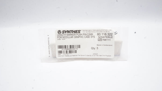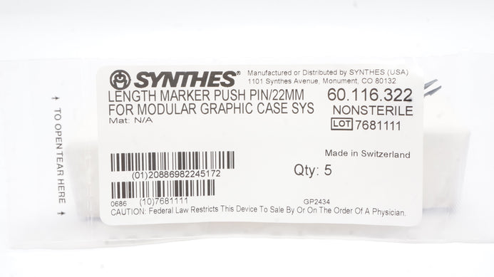 - Synthes 60.116.322 Length Marker Push Pin/22mm Nonsterile - Pack of 3