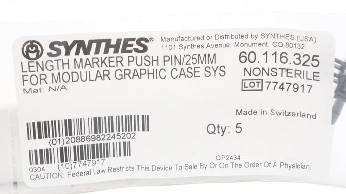 - Synthes 60.116.325 Length Marker Push Pin/25mm - Pack of 4